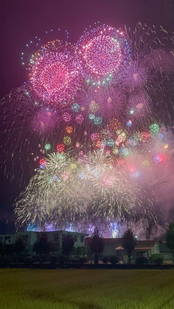 Ein typisches Merkmal für japanische Feuerwerke ist auch, dass die Raketen nicht einfach wahllos in den Himmel geschossen werden, sondern begleitet von Musik eine einzigartige Geschichte erzählen.