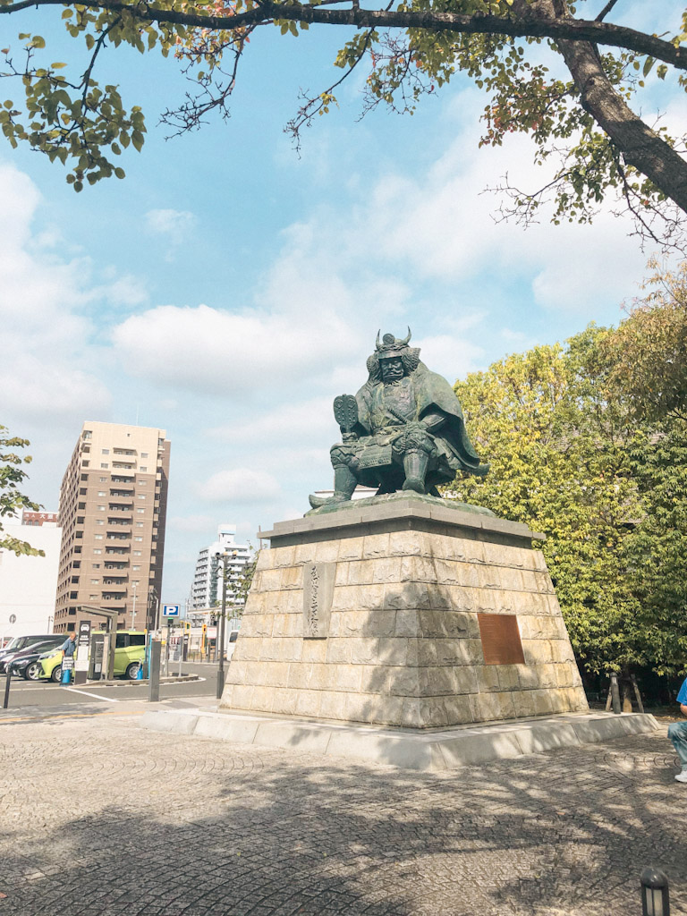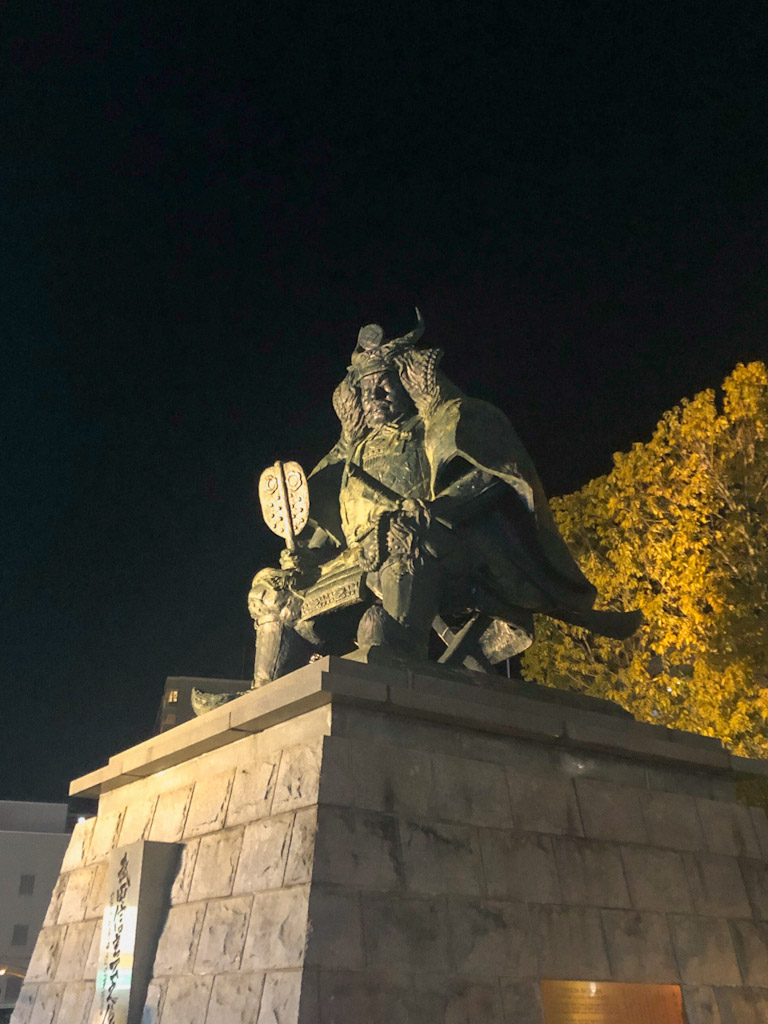 Takeda Shingen ist in Kōfu (und natürlich Yamanashi) einfach ikonisch – was wir ja bereits nun wissen. Es ist also nicht weiter verwunderlich, eine große Statue zu seinem Gedenken in Kōfu zu finden. Als Wahrzeichen der Stadt befindet sich die Shingen-Takeda-Statue gleich am südlichen Eingang des Bahnhofs.