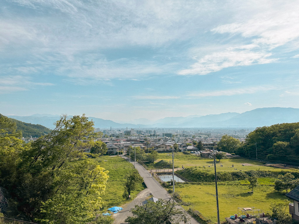Nicht weit vom Takeda-Schrein gibt es einen kleinen Hügel, der als Ryuga Ponds Observation Deck bekannt ist, den du hinauflaufen kannst. Von dort aus kannst du die Stadt Kōfu und die umliegenden Berge erblicken.
