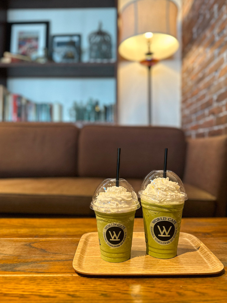 Eine tolle Starbucks-Alternative ist das World Café in der Nähe des Einkaufszentrums AEON. Das Stilvoll- und Moderneingerichtete Cafe begeistert viele der Besucher mit ihren Waffeln. Für mich persönlich war aber der Matcha-Frappuccino ein echtes Highlight.