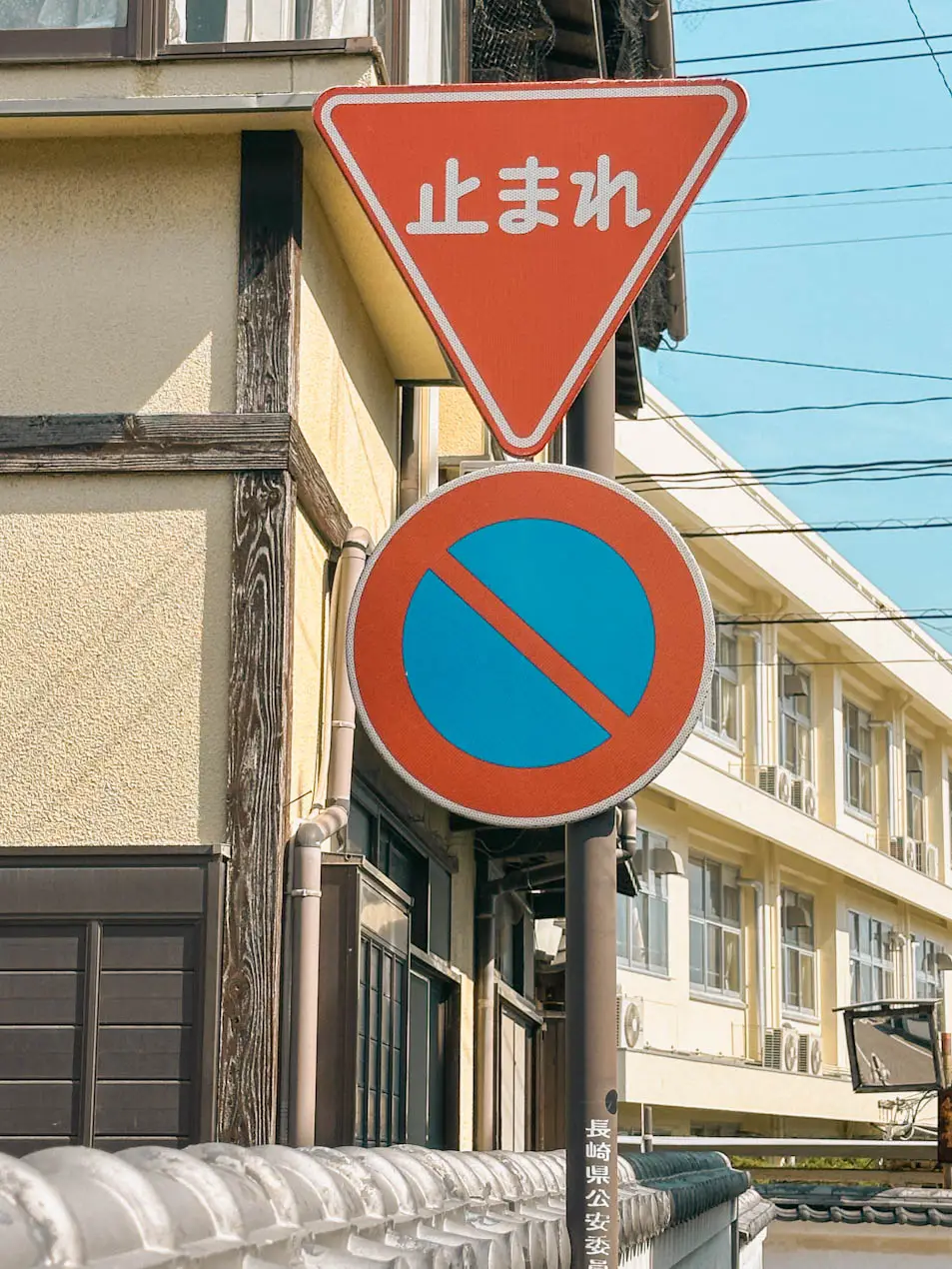 - Stoppschild: In Japan ist das Stoppschild rot, dreieckig und 止まれ steht in der Mitte.