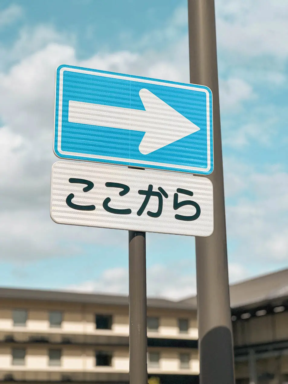- Richtungsschilder (blaue Farbe und zweisprachig – Englisch/Japanisch)