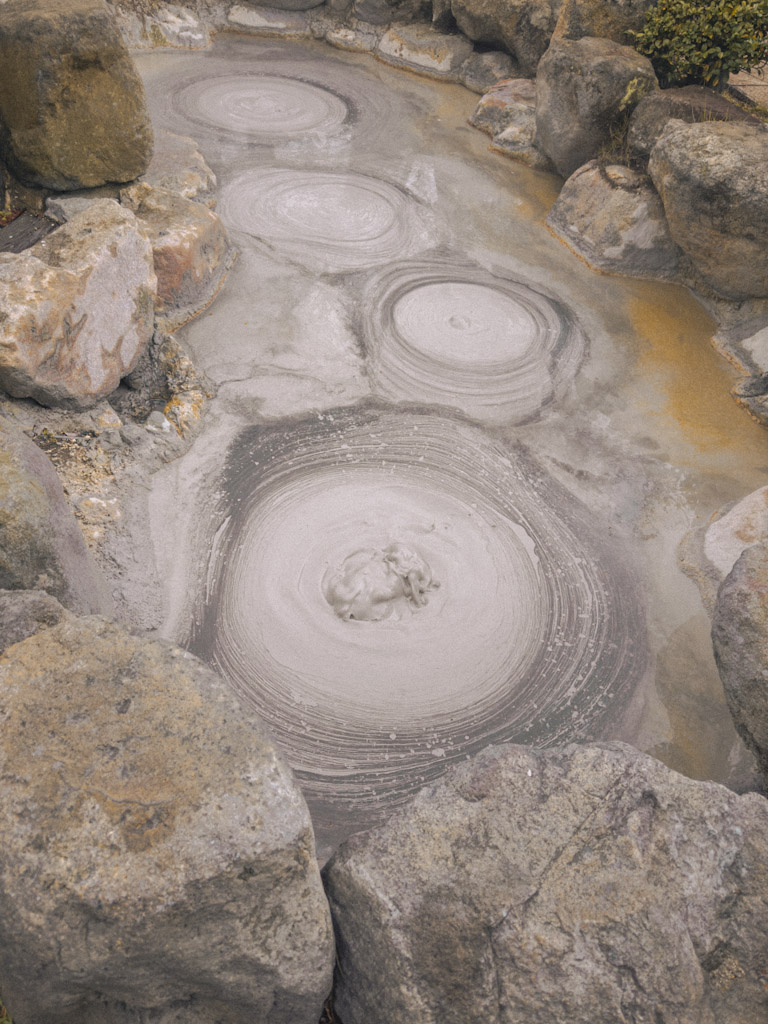 Fasziniert war ich von der einzigartigen Kombination aus Dampf, der ständig aus der Erde strömt, den vielfältigen „Höllen“ (jigoku genannt) und den zahlreichen Onsen, die sich an jeder Ecke der Stadt befinden. Wer zum ersten Mal nach Beppu kommt, bekommt das Gefühl, dass es nicht von dieser Welt ist.