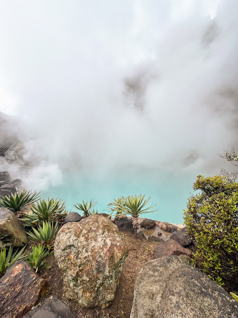 Von dort oben aus siehst du dann auch nochmal richtig, wie der Dampf der heißen Quellen aus dem Boden kommt.