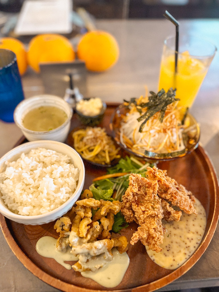 Als Nächstes machst du dich auf den Weg zu Yuzutsu, einem kleinen, versteckten Café in der Nähe des Sakai Rivers. Das Café hat ein wechselndes Mittagsmenü im japanischen Stil. Alles wird mit viel Sorgfalt und Liebe zubereitet.
