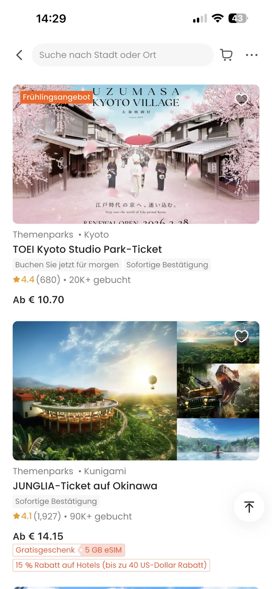 Beliebte Sehenswürdigkeiten, Themenparks und Events sind in Japan oft wochen- oder sogar monatelang im Voraus ausgebucht. Plane frühzeitig – diese App hilft dabei.