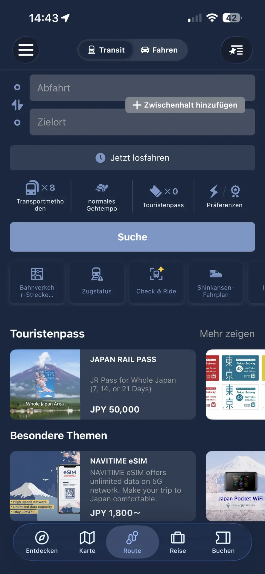 NAVITIME ist kein Ersatz für Google Maps, sondern die ideale Ergänzung – besonders wenn du einen Japan Rail Pass oder einen anderen Reisepass besitzt. Du kannst in der App hinterlegen, welchen Pass du hast (z. B. den landesweiten JR-Pass, den regionalen Hokuriku-Arch-Pass oder den Tokyo-Subway-Pass). Die App berechnet daraufhin Routen, die prioritär oder ausschließlich diese Pässe nutzen – das spart dir bares Geld und böse Überraschungen am Ticket-Gate.