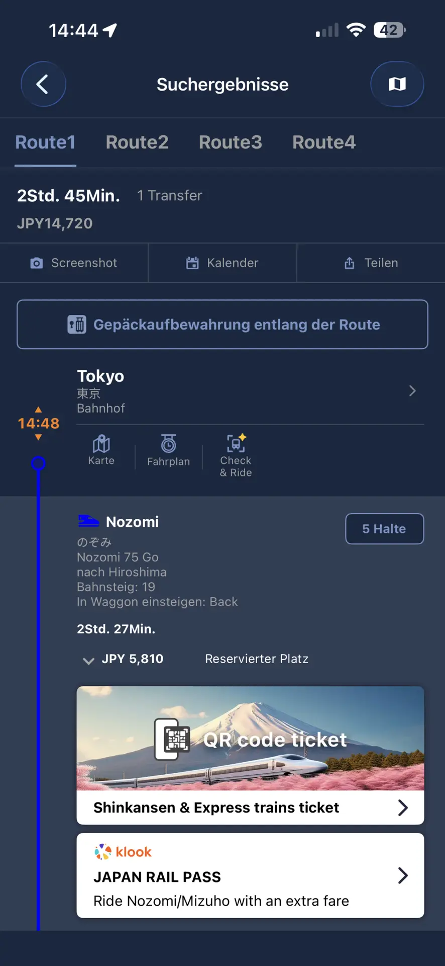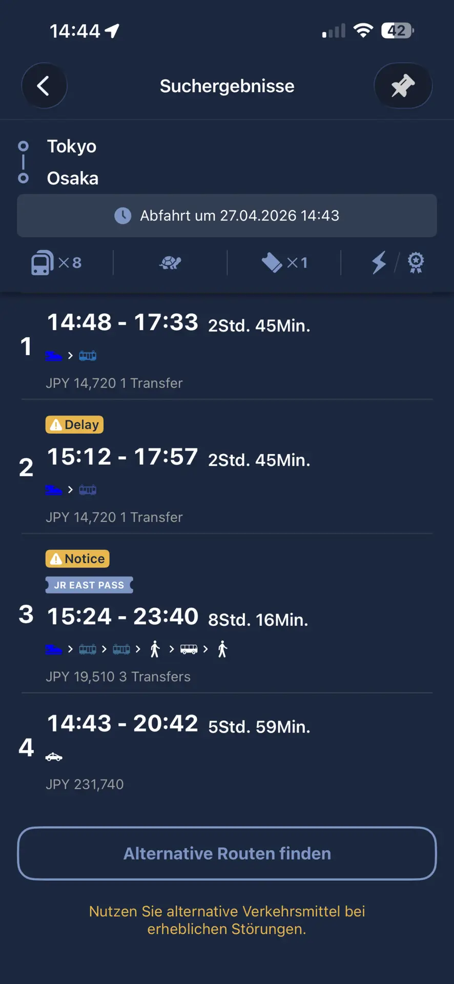 - Lade die App schon in Deutschland herunter und spiele ein paar Routen durch (z. B. vom Flughafen Narita zu deinem Hotel). So merkst du schnell, wie intuitiv die Filter funktionieren.