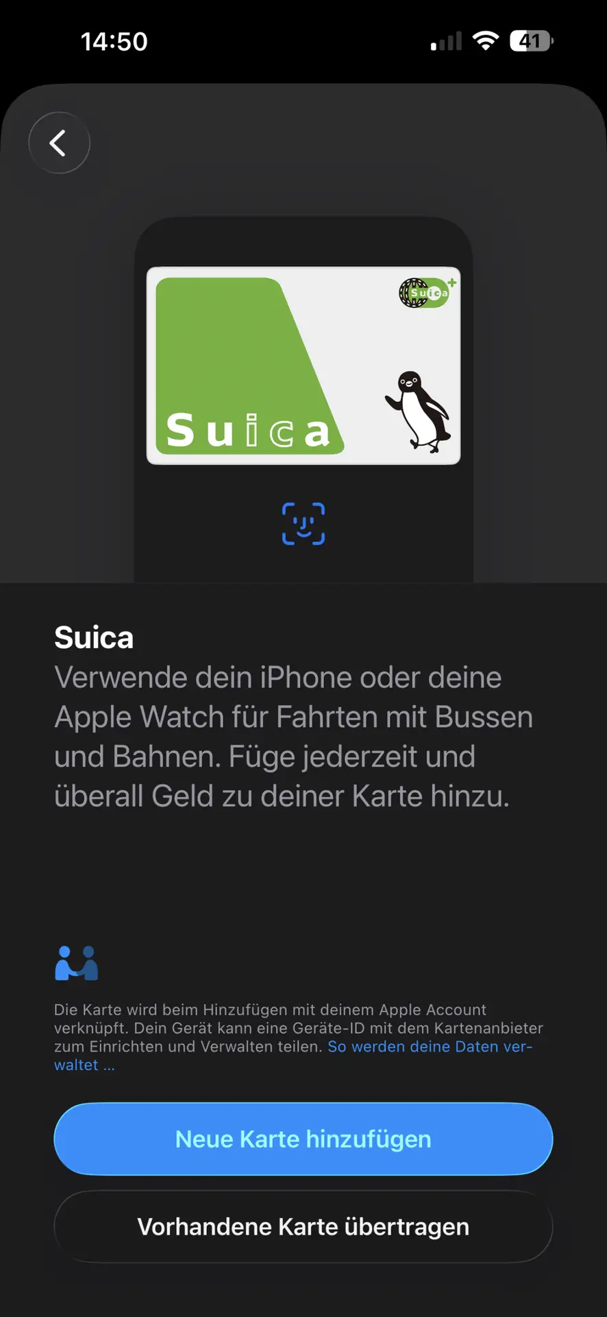 - Alternativ kannst du auch die Pasmo-Karte herunterladen. Gleiche Funktion wie die Suica-Karte und wird auch landesweit akzeptiert.