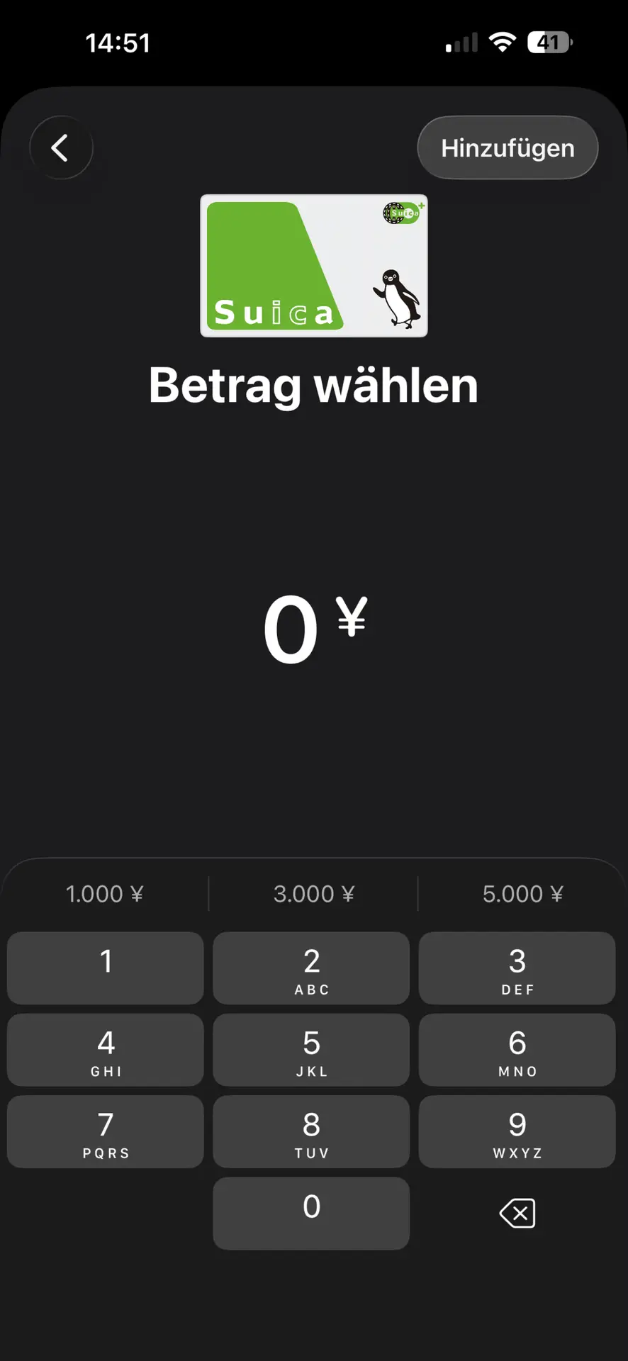 - Tippe auf „Fortfahren“ und wähle einen Betrag aus, den du aufladen möchtest (z. B. 1.000 oder 2.000 Yen – das sind ca. 6 bis 12 €).