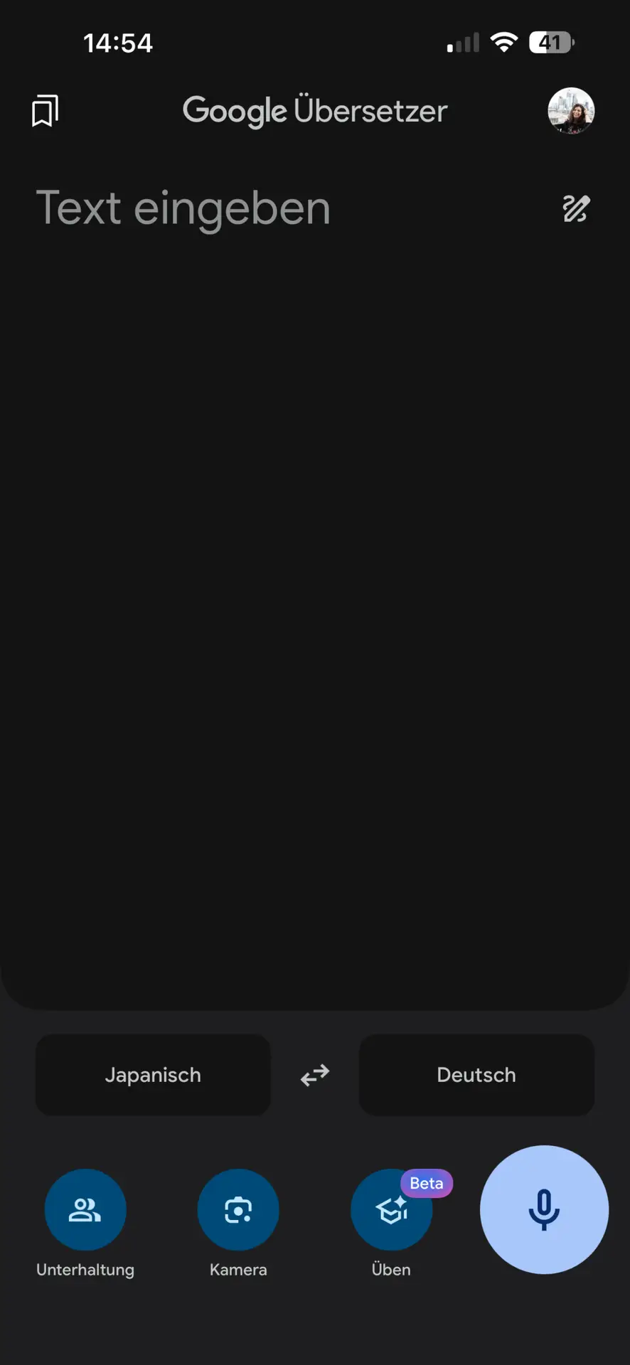 - Gesprächsmodus: Du und dein Gegenüber sprecht abwechselnd in eurer Muttersprache – die App übersetzt in Echtzeit.