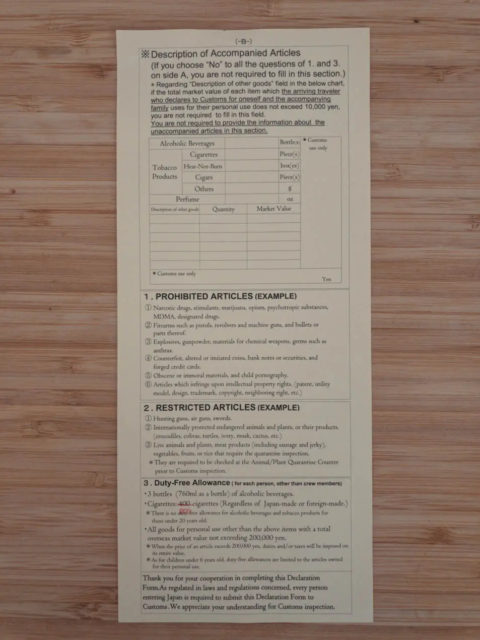 Während des Fluges werden zwei Formulare verteilt. Das Einreiseformular (weiß) und das Zollformular (gelb). Diese musst du ausfüllen, wenn du dich nicht bei Visit Japan Web vorher registriert hast.