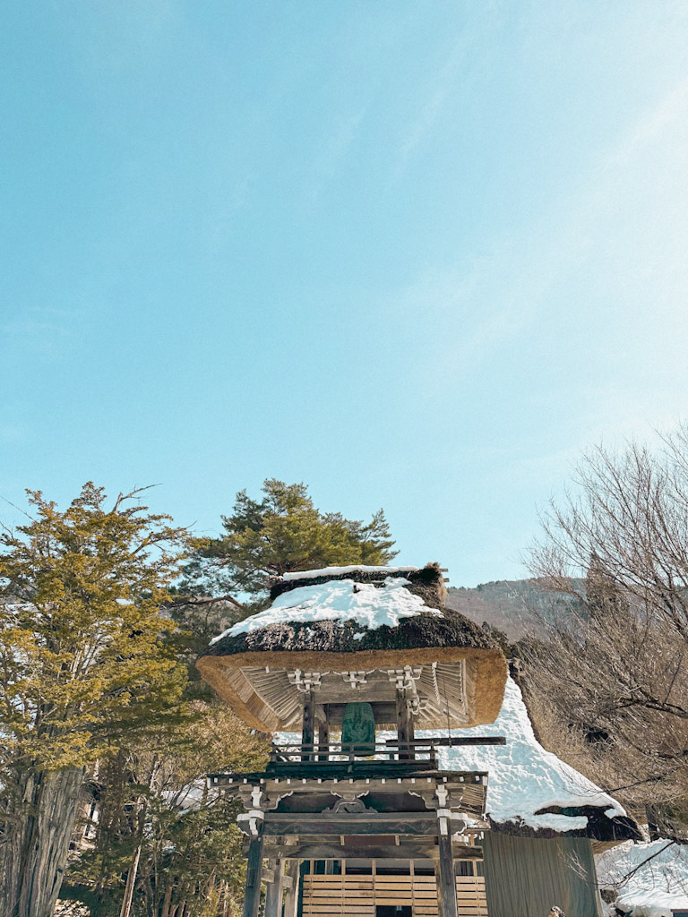 Was du auf keinen Fall in Shirakawa-go verpassen solltest, ist es, den Myozenji-Tempel zu besuchen. Er ist einzigartig, da er – im Gegensatz zu den typischen Tempelbauten – im berühmten Gassho-Zukuri-Stil errichtet wurde. Dieser Stil, bei dem die steilen Strohdächer an betende Hände erinnern, ist charakteristisch für die Region und dient dazu, die schweren Schneelasten der Wintermonate zu tragen.
