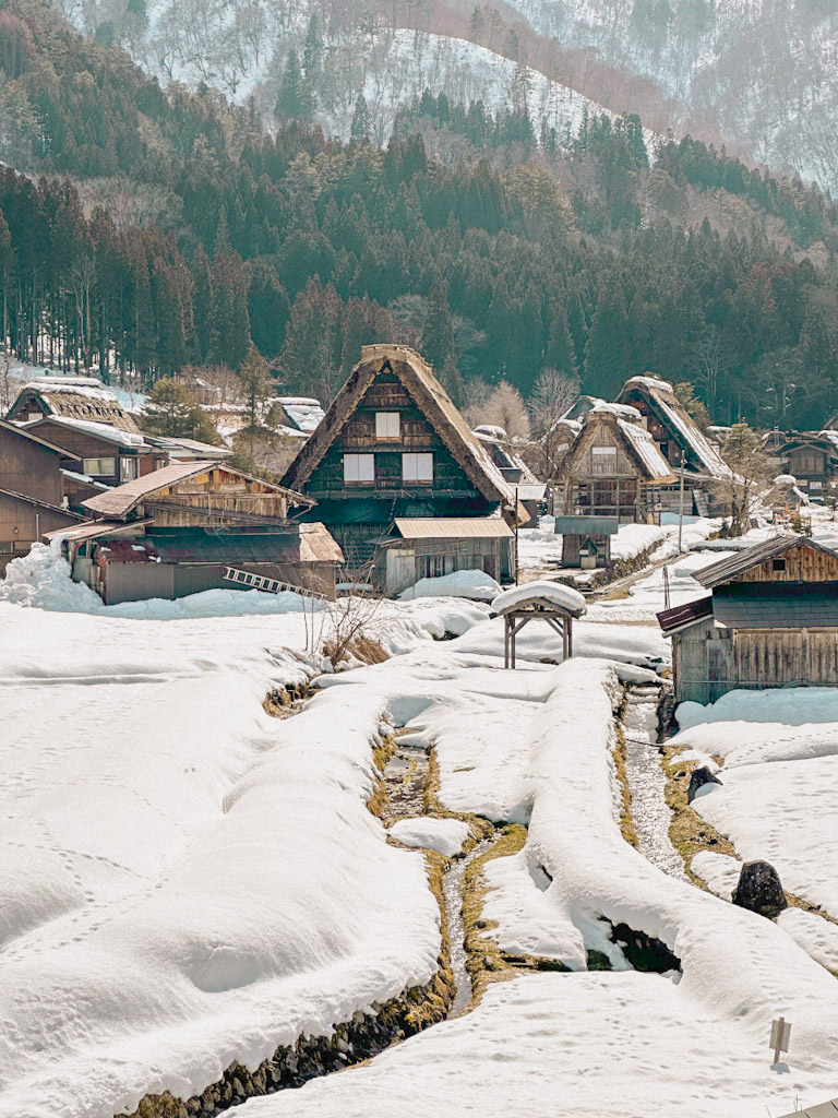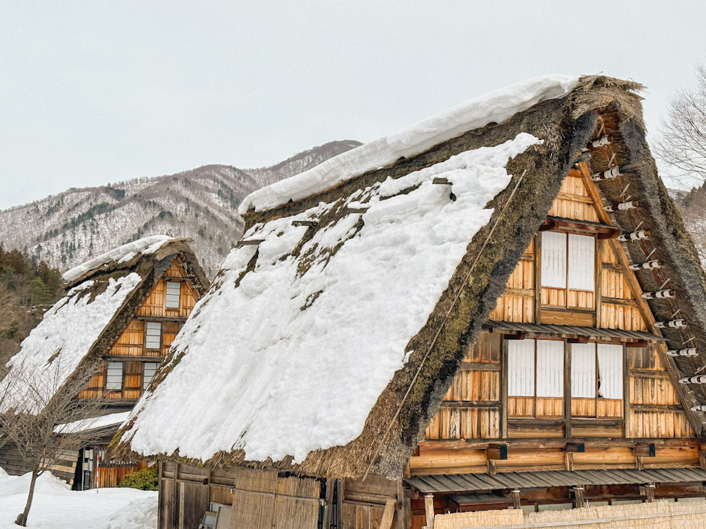 Besonders berühmt in Shirakawa-go sind die entwickelten Gassho-Zukuri-Häuser um den extremen Wetterbedingungen der Region standzuhalten. Die Bauweise ist einzigartig und zeichnet sich durch hohe, steile Strohdächer aus, die wie betende Hände („Gassho“) aussehen.