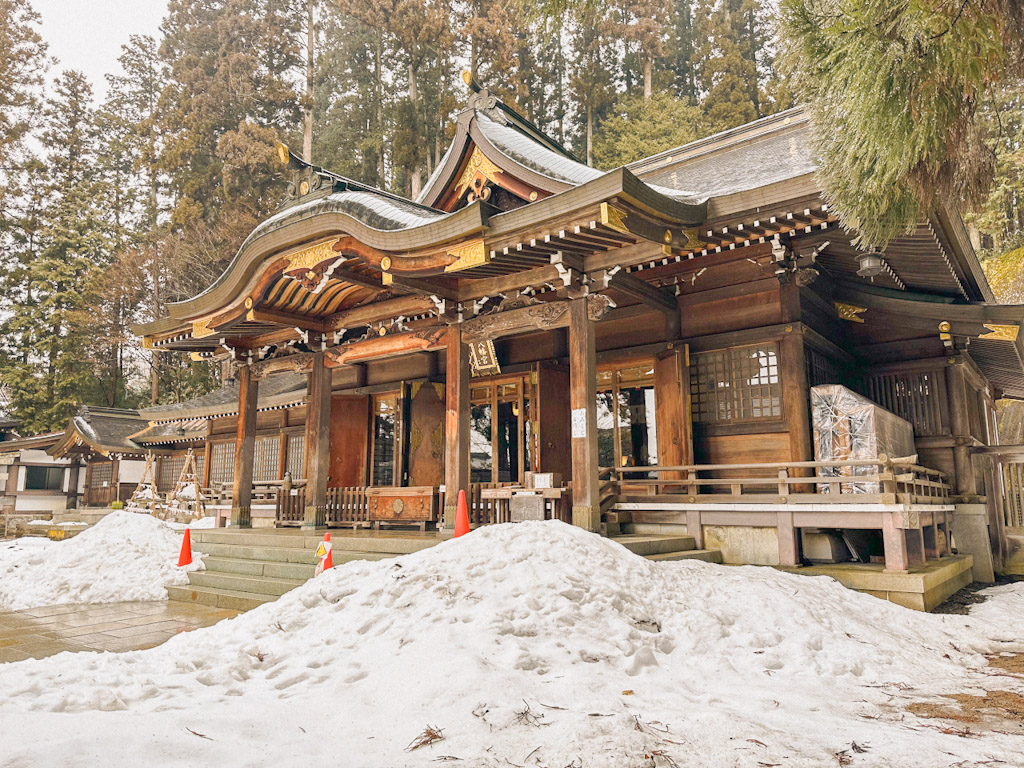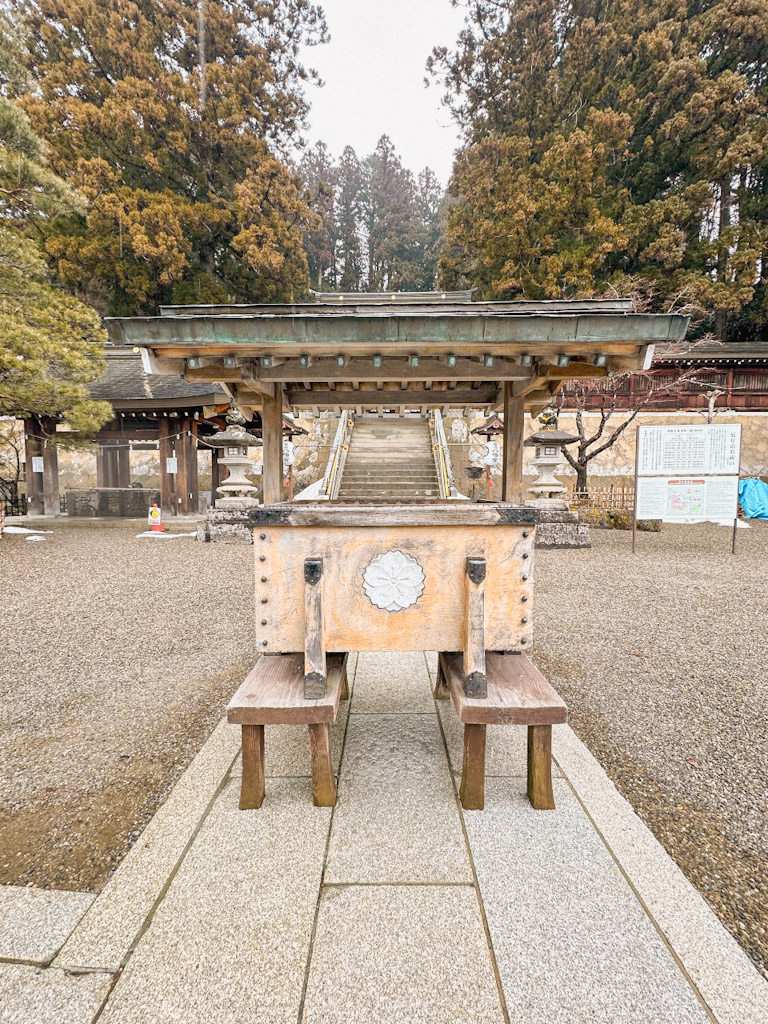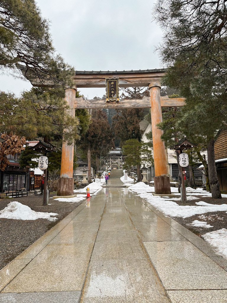 Umgeben von Pinien und Zedernbäumen hat der Schrein eine ruhige und friedliche Atmosphäre und bietet einen reizvollen Kontrast zur Stadtlandschaft. Besonders im Winter ist der Sakurayama-Hachimangu-Schrein ein beliebtes Ziel, da er mit Schnee bedeckt eine besonders hübsche Szenerie bietet. Ich hatte leider nicht dieses Glück, da in Takayama der Schnee fast schon geschmolzen war.