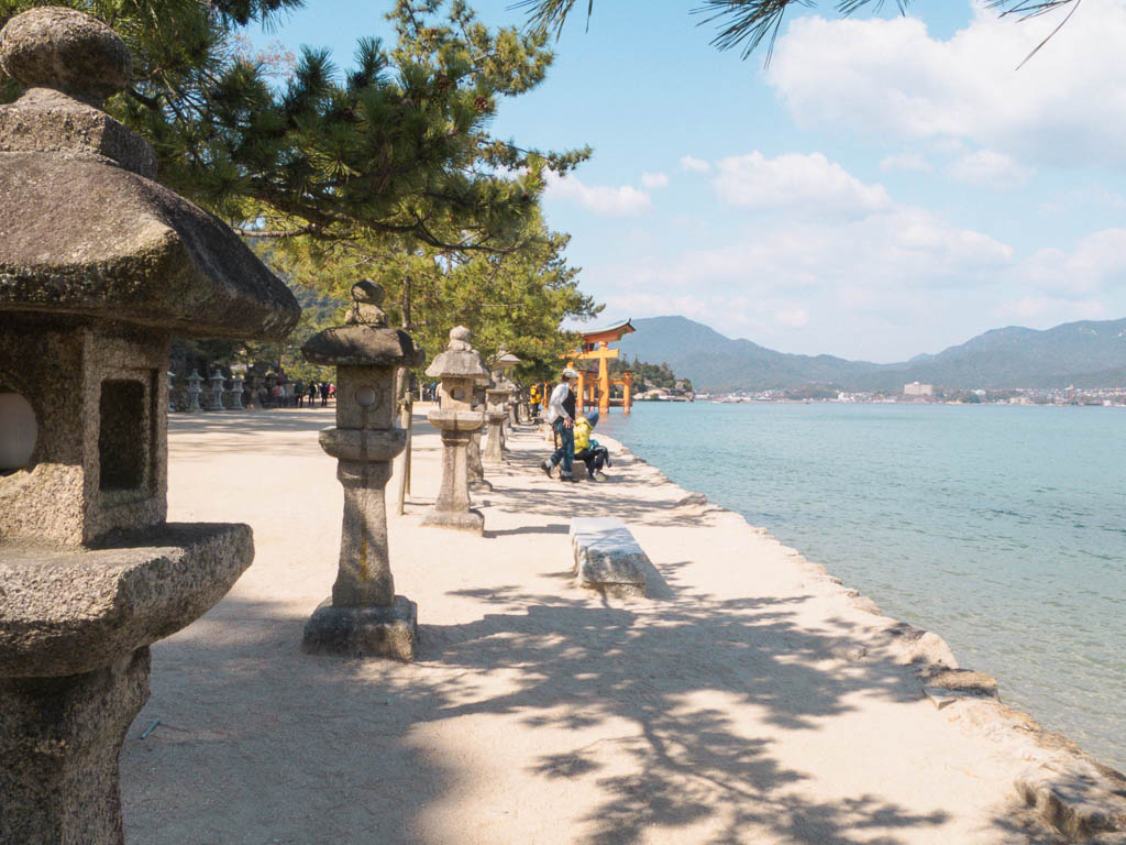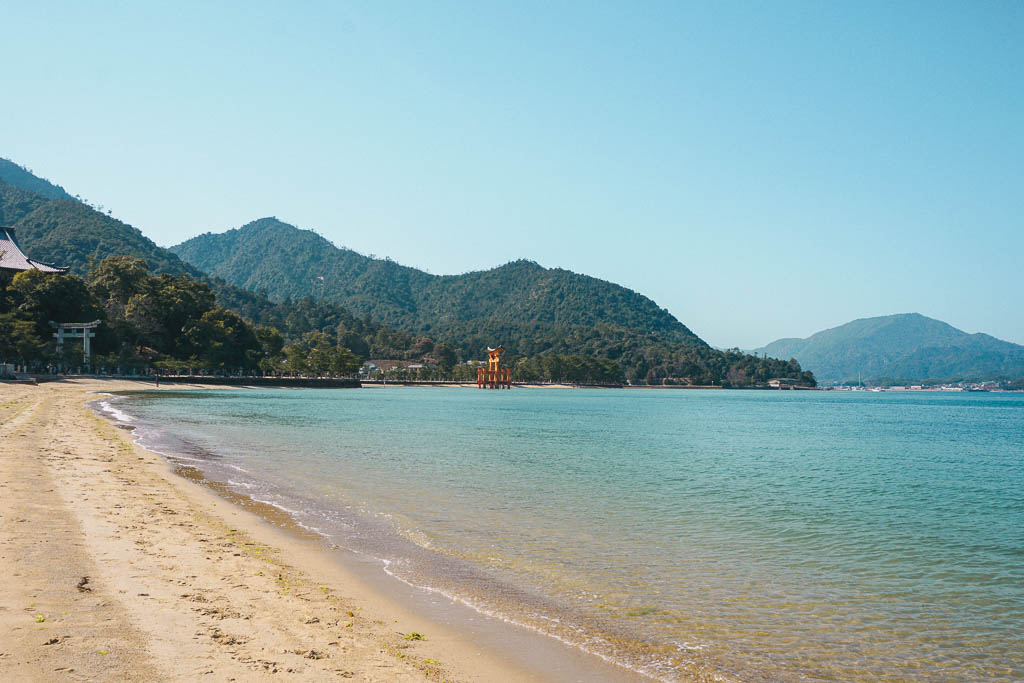 Der Strand ist ein großartiger Ausgangspunkt, um sich mit Miyajima vertraut zu machen, die ersten Rehe zu beobachten und die atemberaubende Natur zu genießen.
