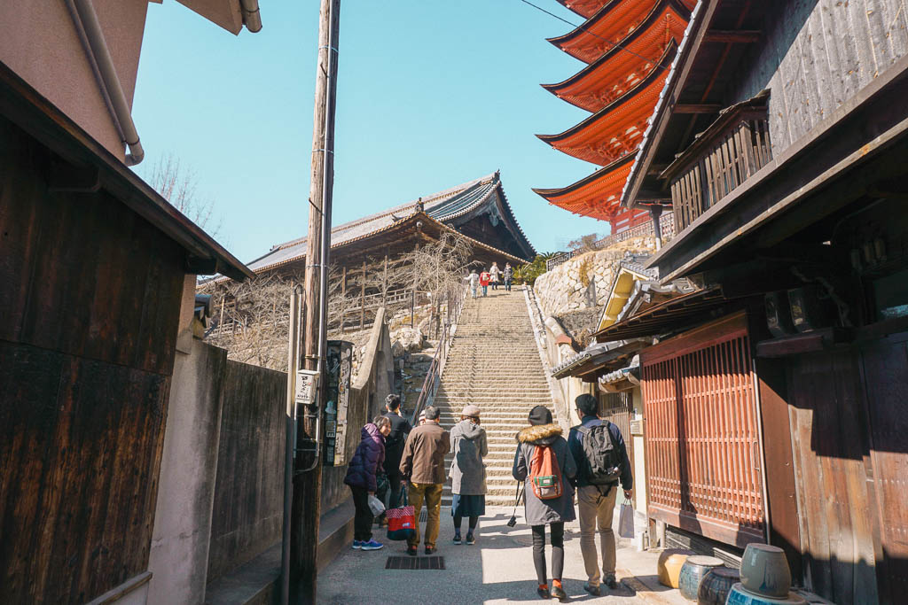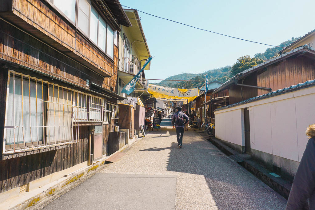 Bevor du die Fähre und den Zug zurück nach Hiroshima nimmst, erkunde noch etwas die wunderschönen Seitenstraßen von Miyajima. Die Insel ist ein malerischer und charmanter Ort und hier hast du oft die Gelegenheit, versteckte Orte zu entdecken.