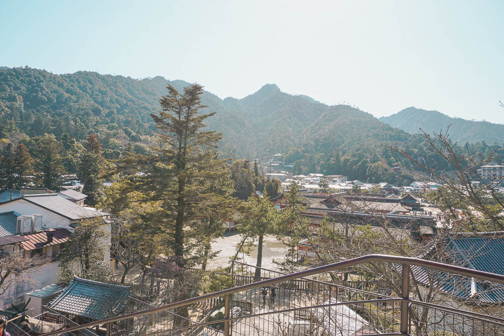 Da der Hokoku-Schrein auf einem kleinen Hügel neben dem Itsukushima-Schrein liegt, bietet er einen großartigen Überblick über die Umgebung.