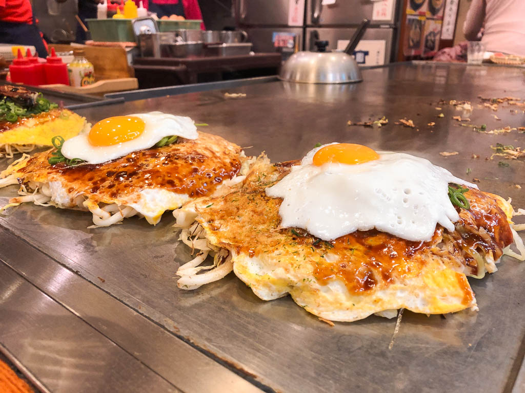 Hiroshima ist vor allem für ein Gericht bekannt: Okonomiyaki. Leckere deftige Pfannkuchen mit verschiedenen Füllungen wie Kohl, Nudeln, Fleisch oder Meeresfrüchten. Eins meiner absoluten Lieblingsgerichte, von dem ich einfach nicht genug essen kann!