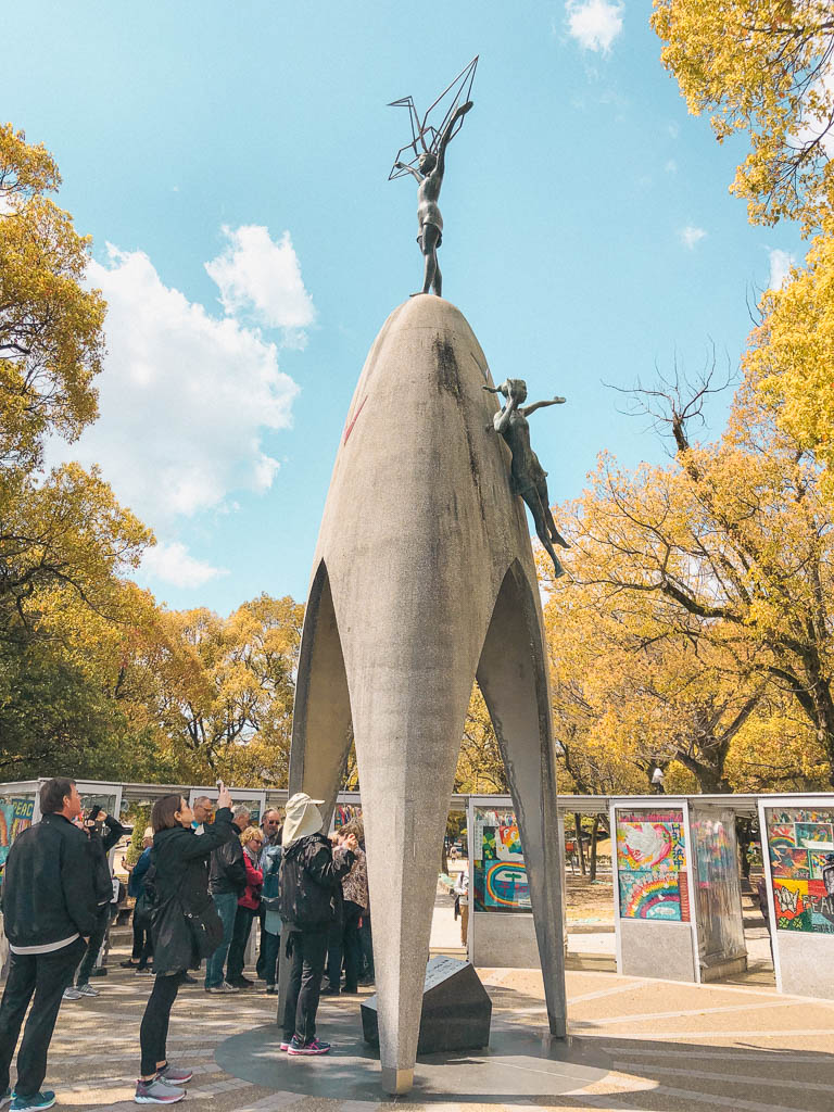 Besonders der Atomic Bomb Dome und das Childrens Peace Monument sollten nicht ausgelassen werden. Ersteres symbolisiert Unverwüstlichkeit trotz der zerstörerischen Wirkung der Atombombe, und Letzteres verdeutlicht die langfristigen Folgen für die nachfolgenden Generationen.