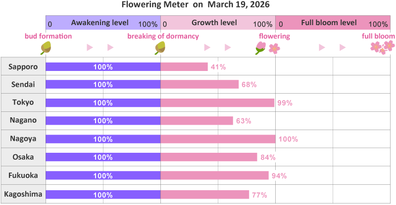 Der Flowering Meter liefert dir eine Übersicht über den aktuellen Fortschritt der Kirschbäume und ihren Blühstatus. So kannst du auch die Zeit zwischen der Vollblüte in vollen Stücken genießen.