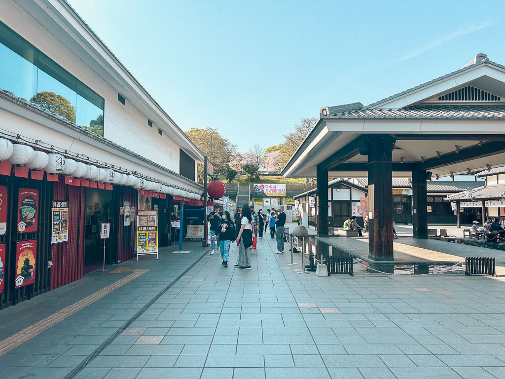Sakura no Baba Josaien liegt am Fuße der Burg Kumamoto und stellt eine charmante Burgstadt aus der Edo-Periode nach. Das Gebiet ist ein großartiger Ort, um zu essen und die Kultur und Geschichte von Kumamoto zu erleben.