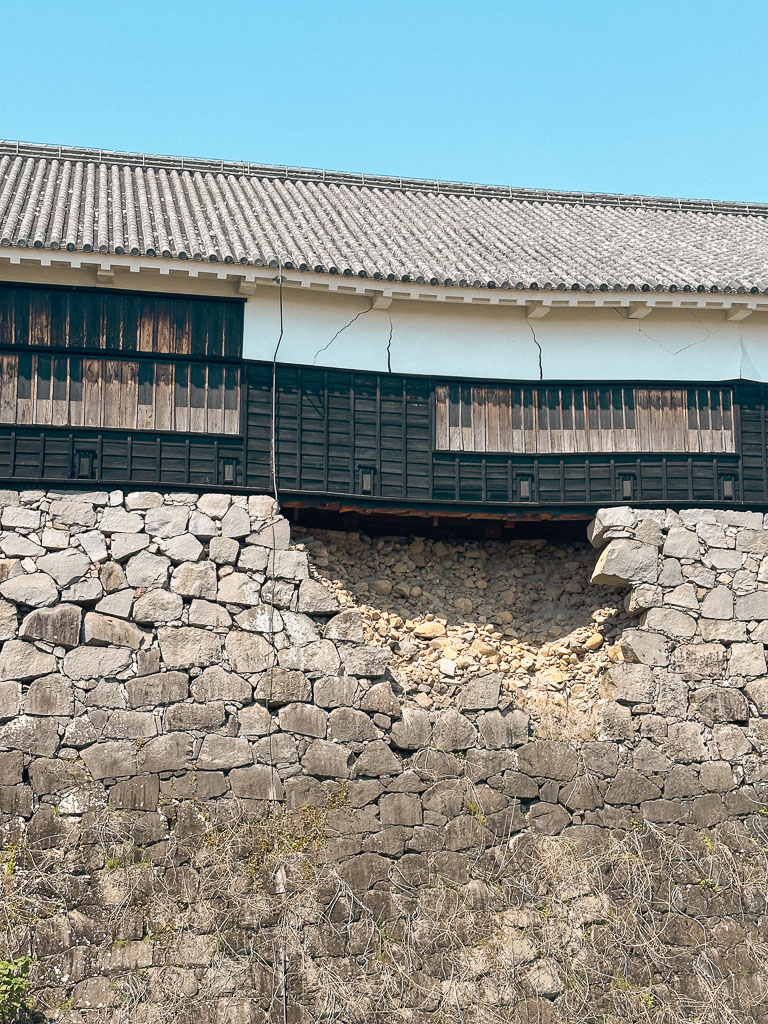 Leider wurde Burg Kumamoto im Laufe der Jahre immer wieder zerstört, nicht zuletzt im April 2016 durch ein schweres Erdbeben in Kyushu. Seit Juni 2021 ist das Innere des Hauptturms der Burg wieder für die Öffentlichkeit zugänglich, aber viele Bereiche sind noch gesperrt. Die Reparaturarbeiten auf dem Burggelände werden voraussichtlich bis 2038 andauern.