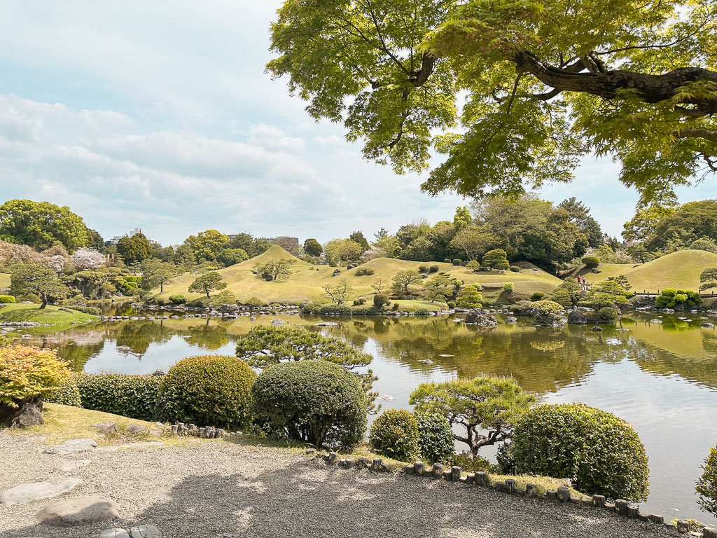 Der Garten ist ein ausgezeichneter Ort, um dem Stadtleben zu entkommen und die friedvolle Stille der Natur zu genießen. Der Garten wurde als Miniaturlandschaftsgarten der 53 Poststationen der Tōkaidō-Straße angelegt. Ein kleiner Höhepunkt dabei ist der kompakte, symmetrische Berg, der Mt. Fuji darstellt.