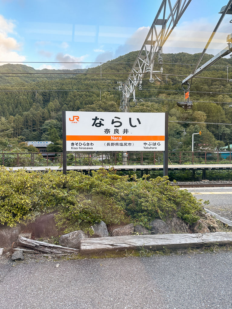 Der Bahnhof Narai befindet sich nördlich von Narai-juku und ist gleich am Anfang der Poststadt. Es fährt nur die Zuglinie JR Chuo die Strecke ab, da die anderen Züge alle dort nicht anhalten. Auch gibt es am südlichen Ende der Stadt Parkplätze weswegen du auch gut mit dem Auto dort fahren kannst.