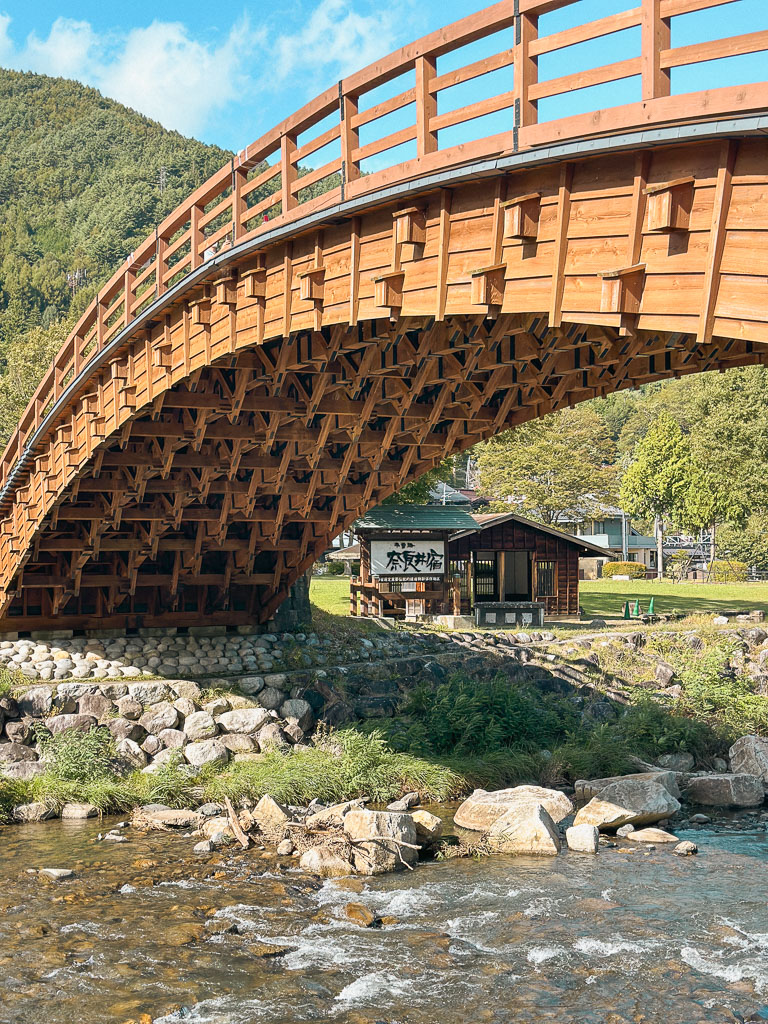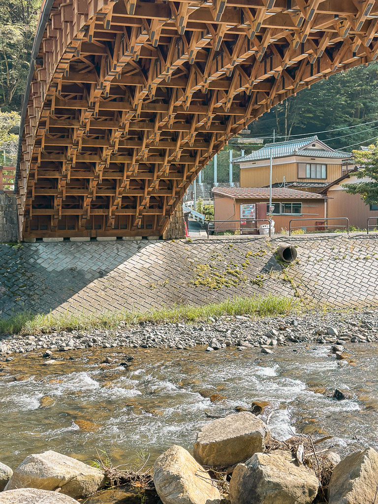 Die Kiso Brücke überspannt den Narai Fluss, der parallel zur Hauptstraße verläuft. Mit einer Länge von 30 Metern ist sie eine der längsten Holzbrücken Japans. Allerdings ist die Brücke im vergleich zu den Gebäuden sehr jung, da sie erst im Jahr 1990 gebaut wurde.