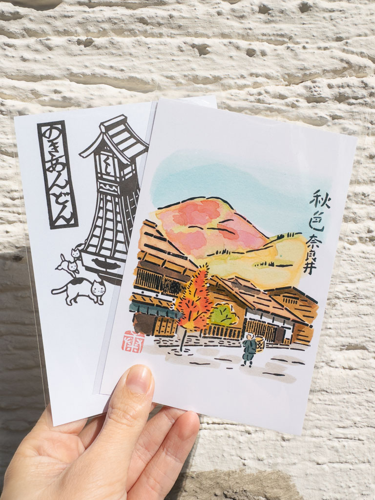 Apropos Postkarten senden: Gefällt dir dort auch eine Postkarte und du möchtest sie jemanden senden, solltest du zu der örtlichen Poststelle gehen und von dort aus die Karte senden. Dort gibt es nämlich niedliche Stempel von Narai-juku.